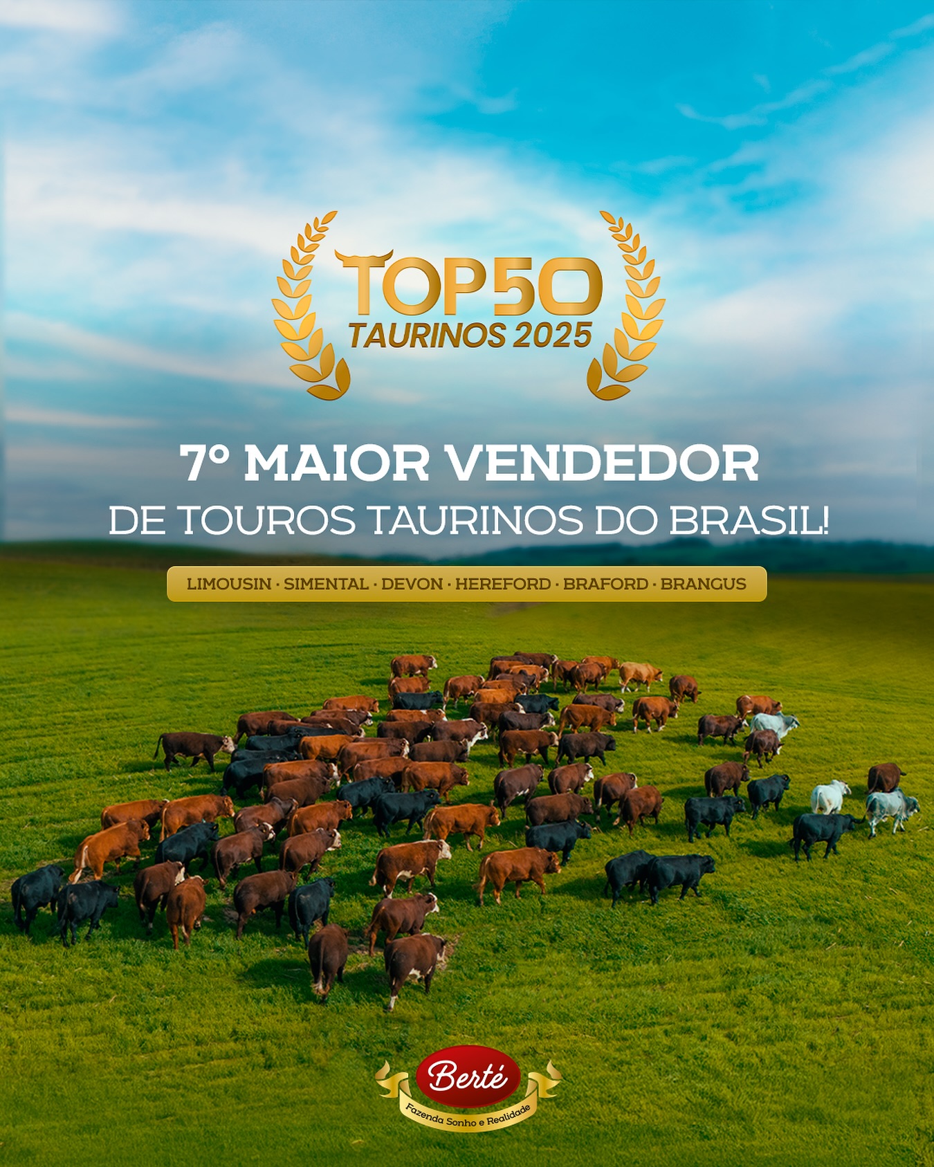 Com imenso orgulho, a Fazenda Sonho e Realidade ocupa a 7ª posição no ranking dos TOP 50 maiores vendedores de TOUROS Taurinos do BRASIL!